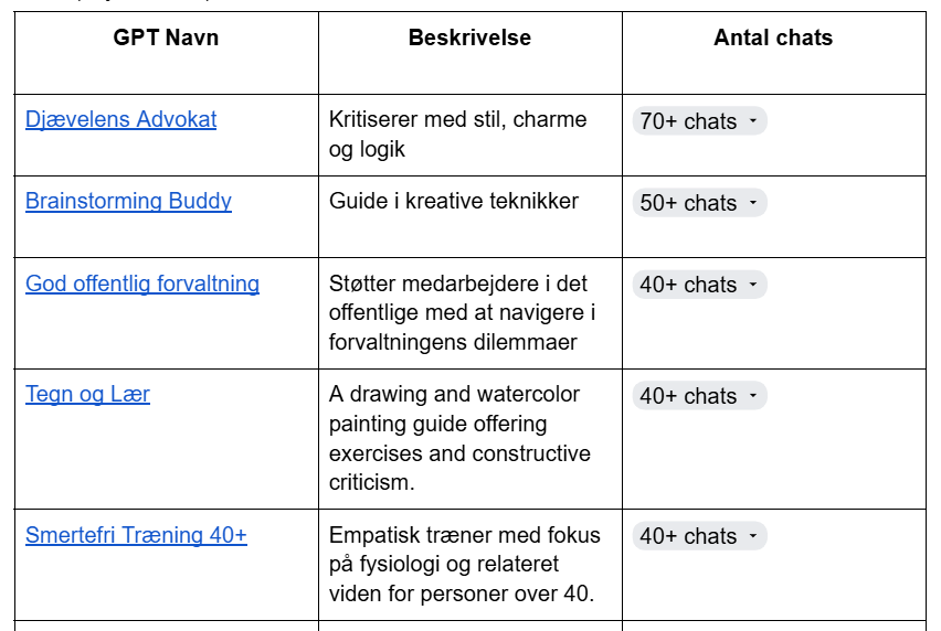 “Samtaler med din GPT kan deles med OpenAI...” (Danish boilerplate about data sharing)