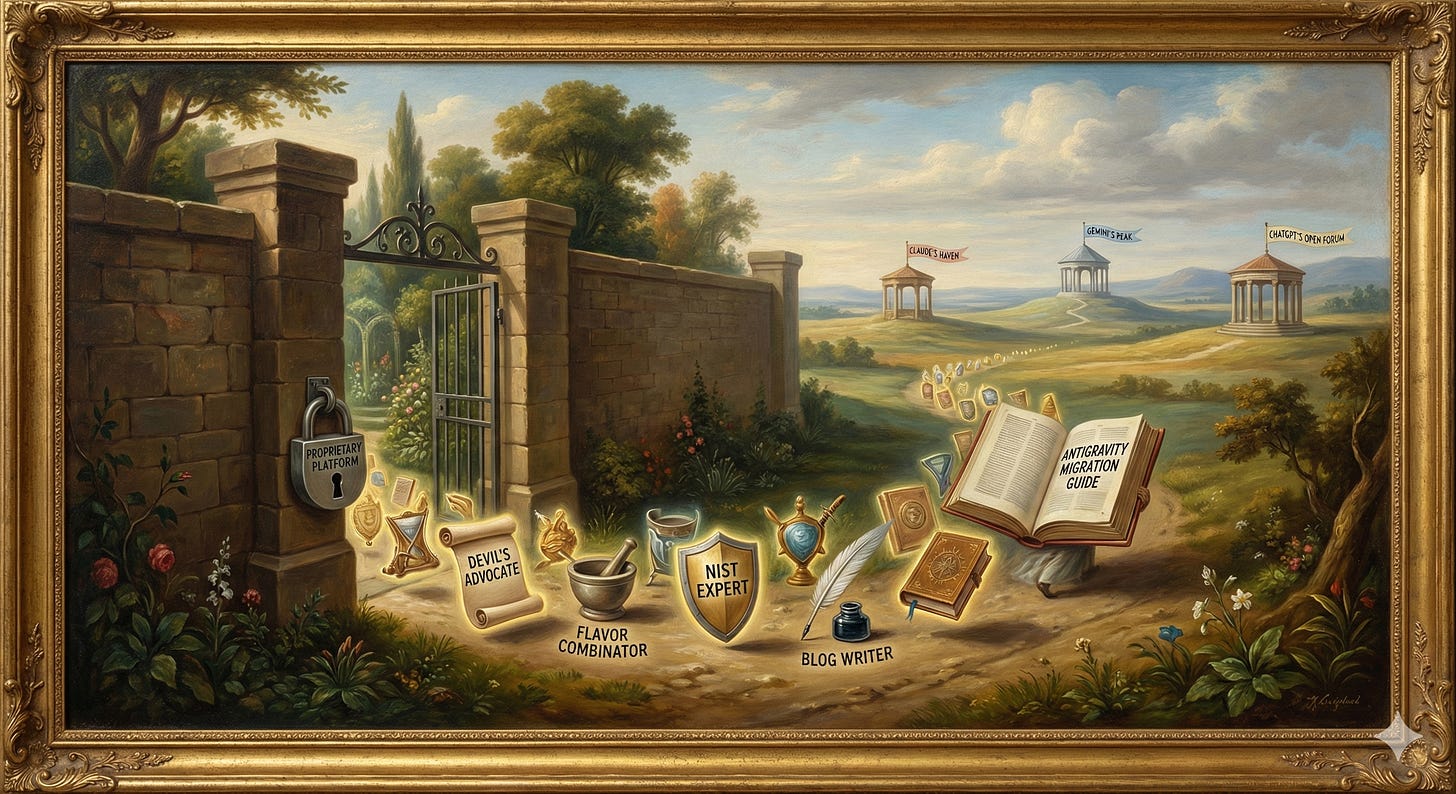 When I looked at moving to Anthropic’s Claude Opus 4.6, ChatGPT 5.2, or testing Google’s Gemini 3 Pro, I realized my intellectual property was trapped. Your prompts, your meticulously curated knowledge files, and your refined personas were locked inside a proprietary database.