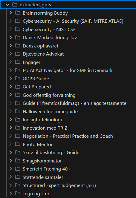 I asked ChatGPT for a list of my Custom GPTs. It was somewhat reluctant (understandably—platform lock-in works both ways), but eventually gave me an unsorted dump of 52 names of CustomGPTs that were both public and popular, private, and some that did not age gracefully.